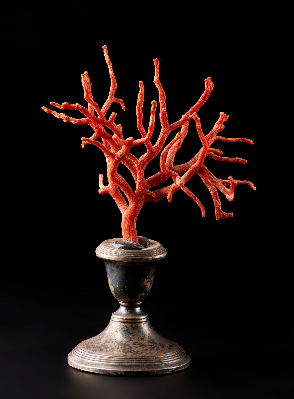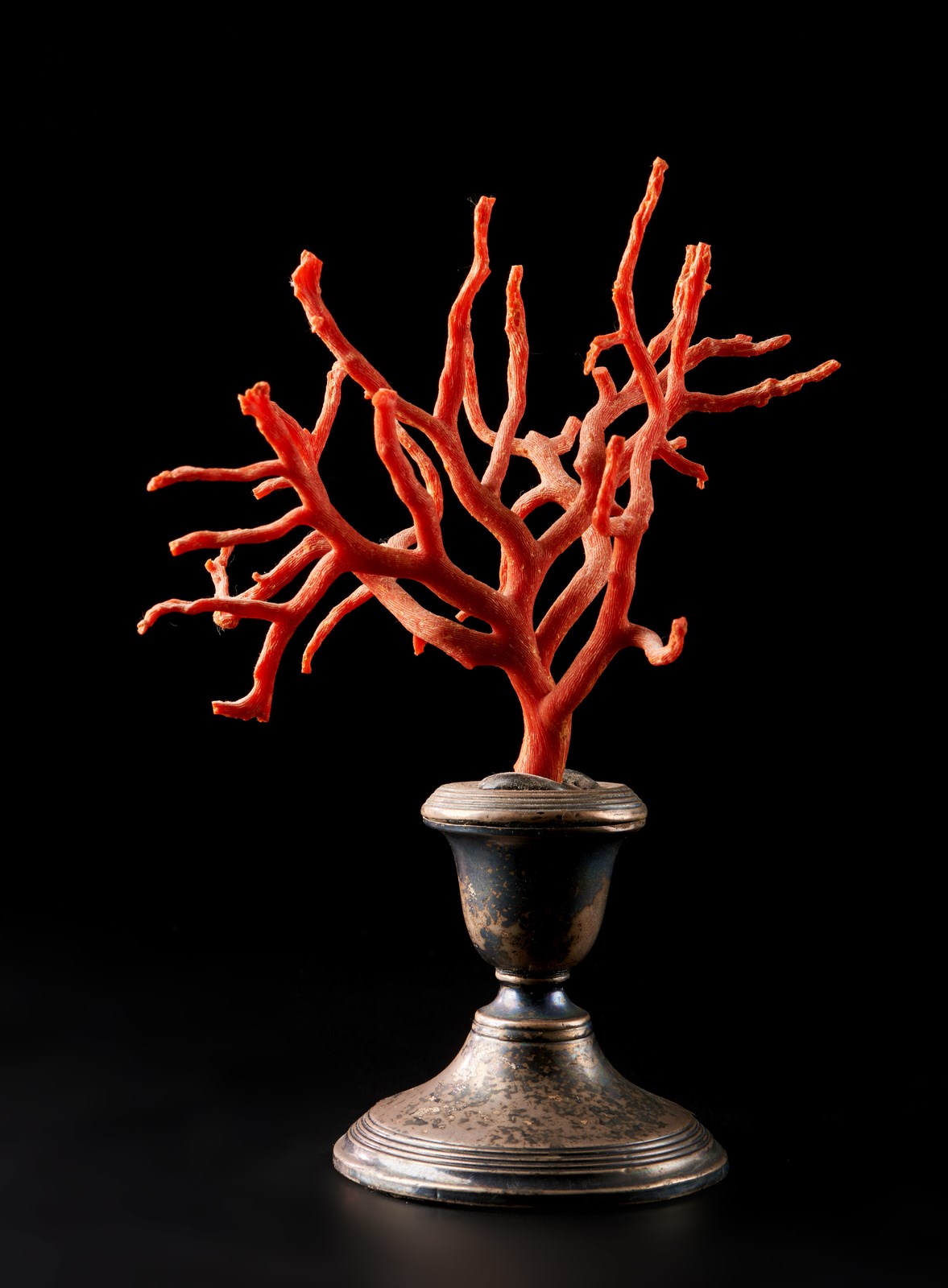 Ramo in corallo rosso su base in argento Italia