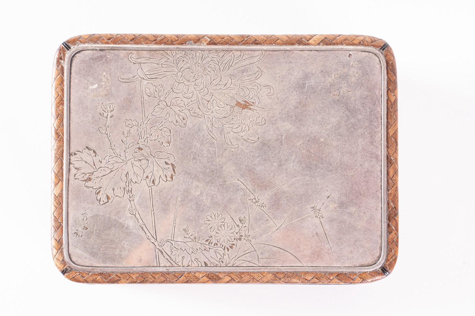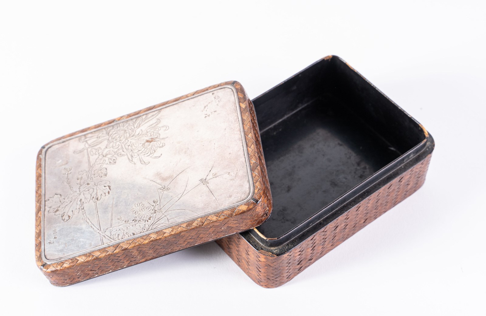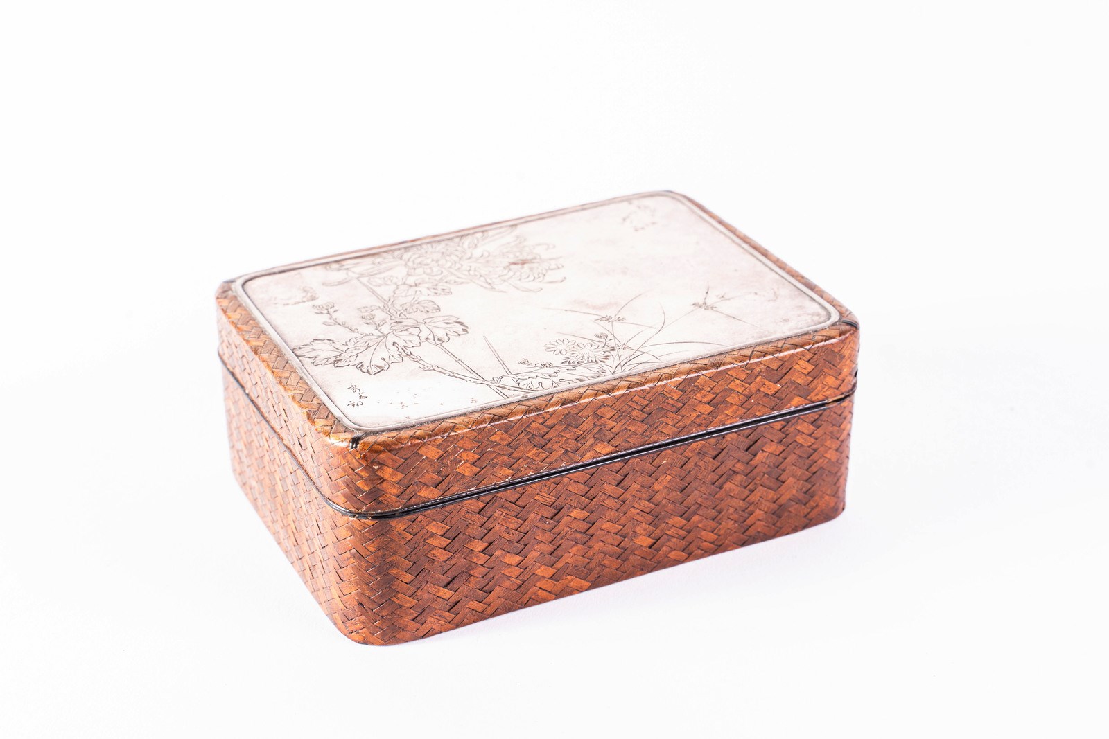 Scatola in metallo argentato, lacca e vimini Giappone, XIX secolo