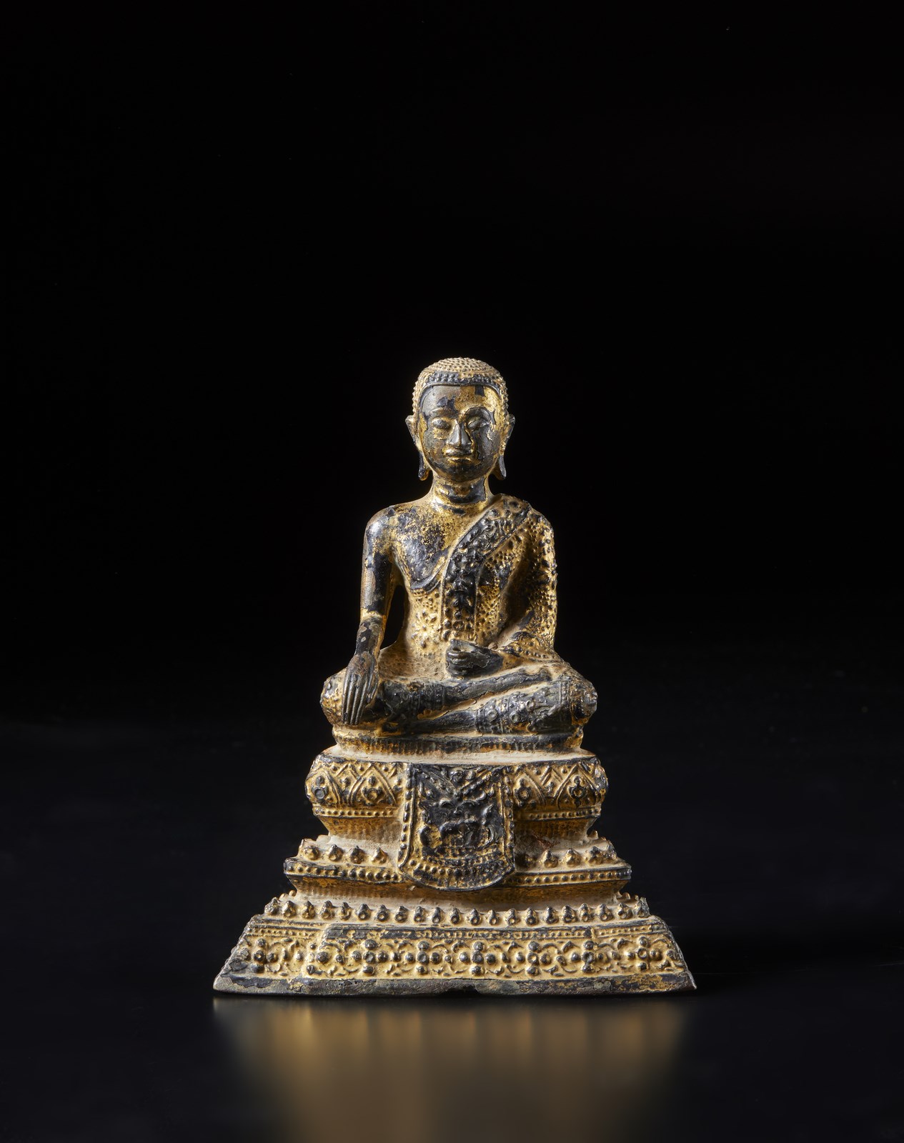 Scultura in bronzo dorato raffigurante Buddha Tailandia, Rattanakosin, XIX seco [..]