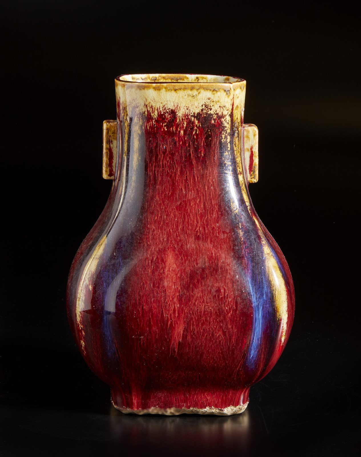 Tre manufatti in porcellana sang de boef Cina, dinastia Qing, XIX secolo