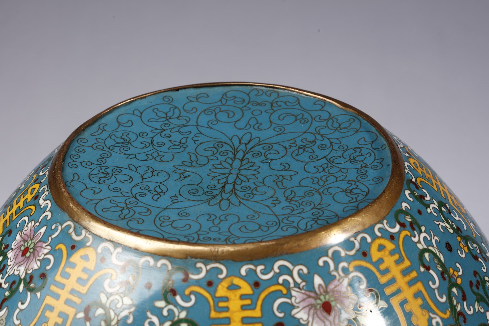 Grande ciotola decorata con a motivo floreale con smalti cloisonnè.