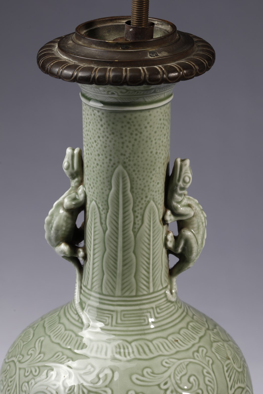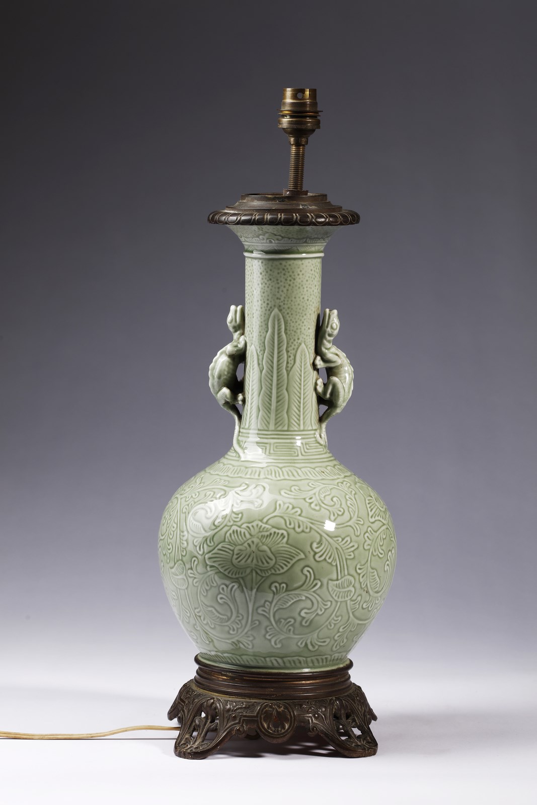 Vaso con invetriatura celadon montato a lampada Cina, XIX secolo