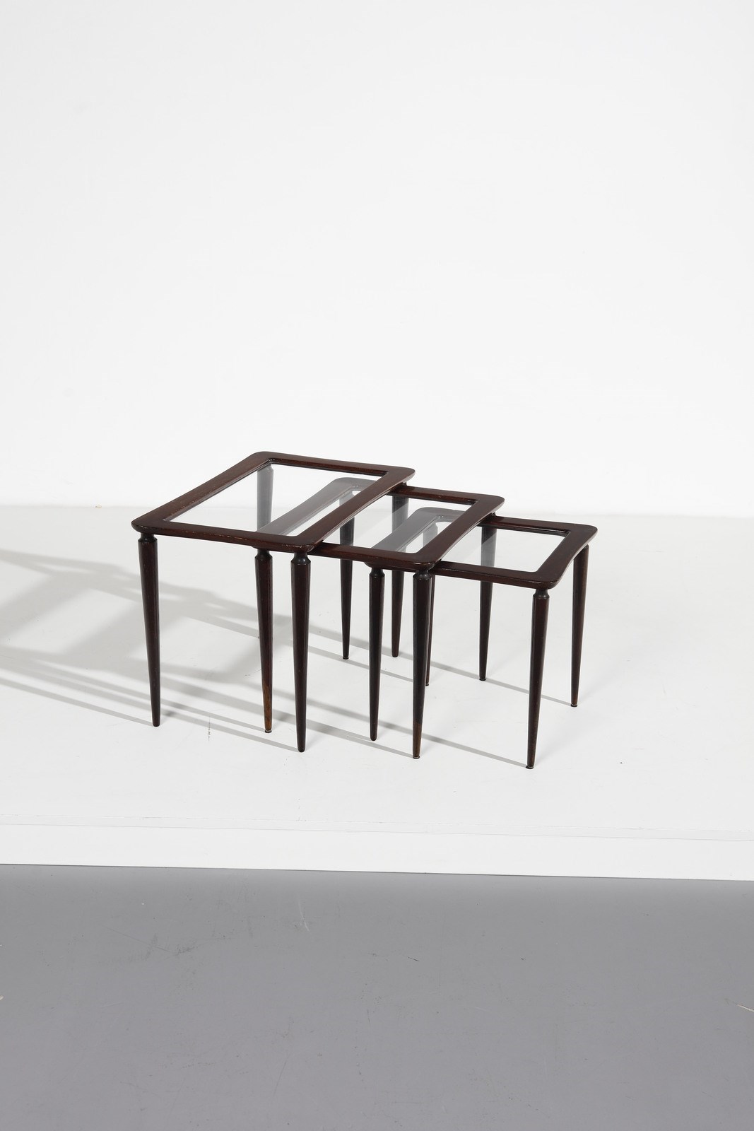 nello stile di. Tre tavolini da salotto impilabili per De Baggis