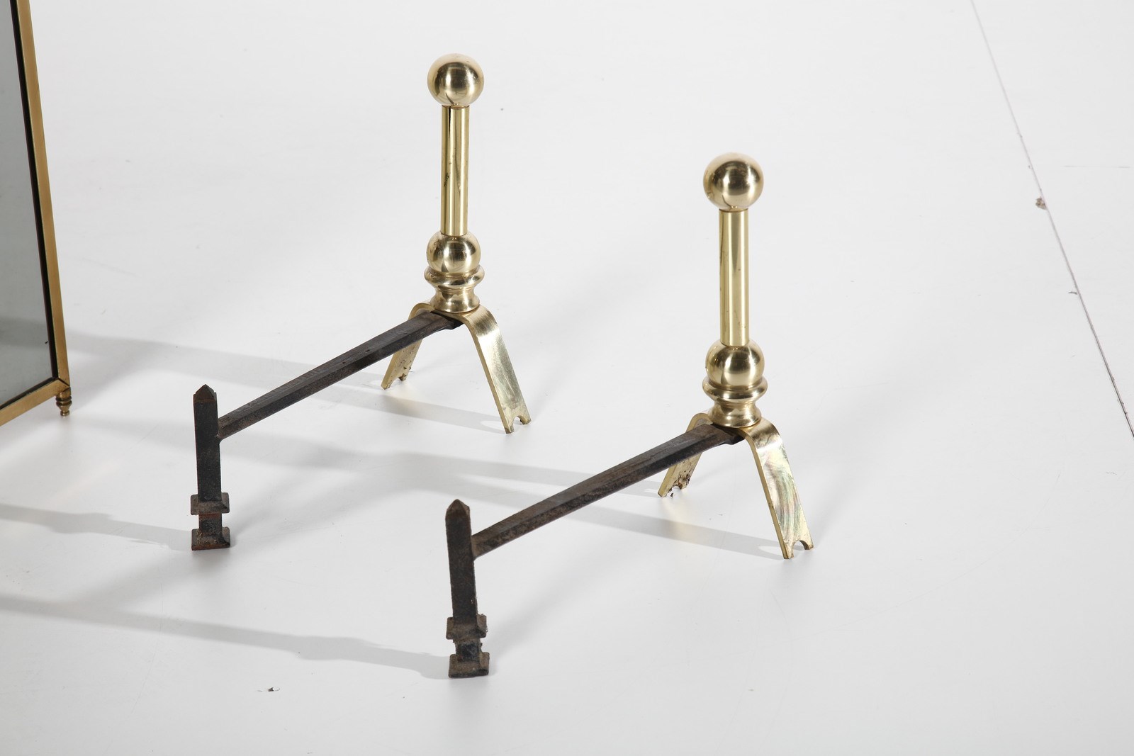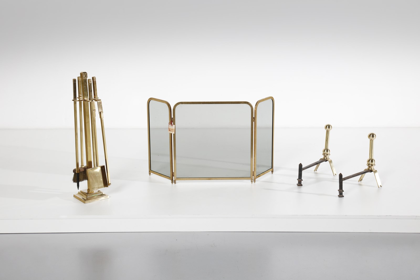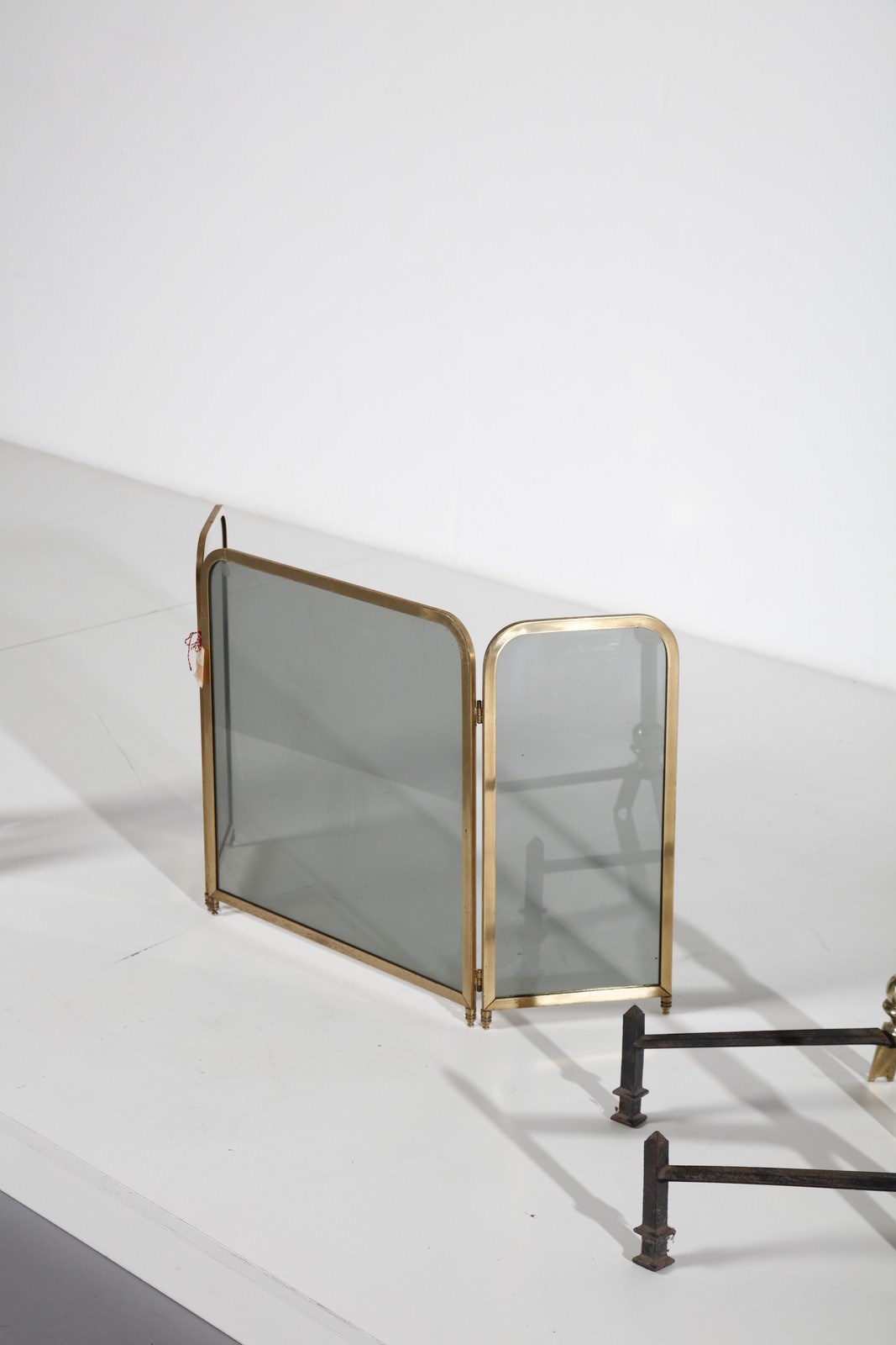 1) parascintille ottone vetro: cm. 100 x 1 alto 542) alari ferro ottone : cm. 16 x 36 alti 343) attrezzi ottone: cm. 20 x 20 alti 77