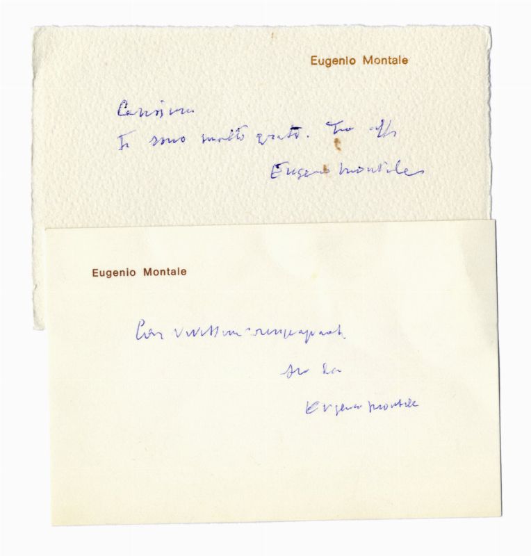 Manoscritti a penna blu. Dimensioni: 70x108 mm.