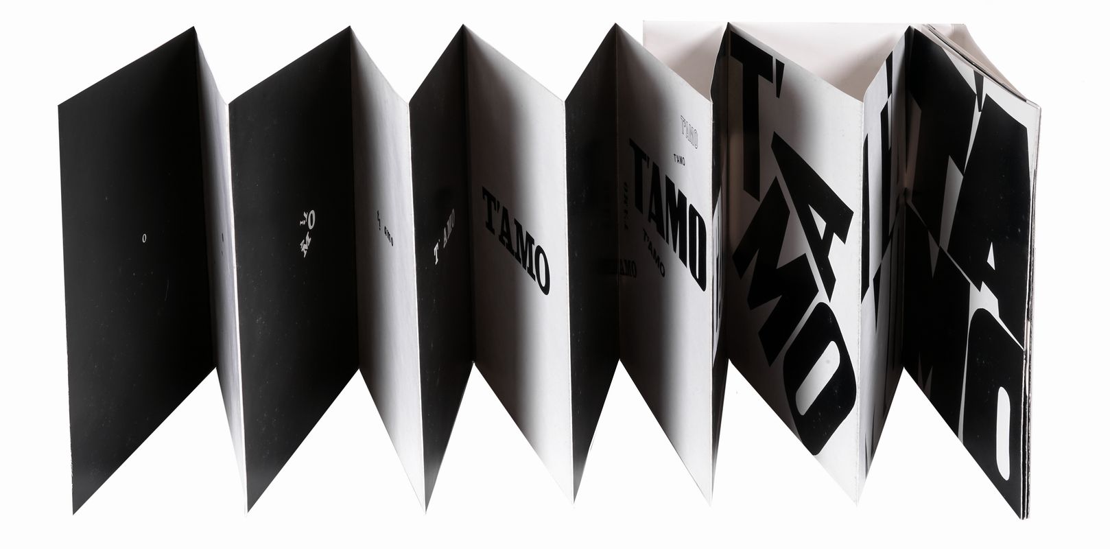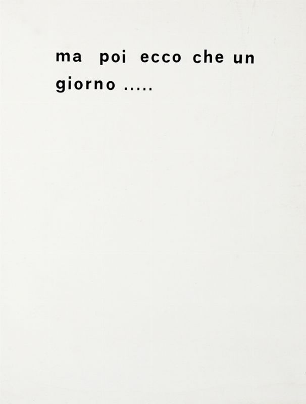 In-4° (mm 300x240). Carte [19], alcune delle quali bianche con scritta in nero (e viceversa). Brossura editoriale con titolo al piatto anteriore. Una lieve gora al margine inferiore del piatto e di alcune carte, altrimenti buona copia. Esemplare n. 62/160, firmato dall'Autore.