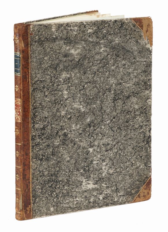 In-folio (mm 445x300). Pagine [2] + 26 tavole calcografiche in coloritura di cui 20 a doppia pagina. Fioriture sparse ad alcune carte ma nel complesso buono stato conservativo. Legatura coeva in mezza pelle con punte e piatti in carta marmorizzata. Sottile cornice decorativa dorata ad entrambi i piatti. Fregi fitomorfi e titoli in oro su doppio tassello in pelle al dorso. Spellature al piatto posteriore, al dorso e alle punte. Tagli gialli.