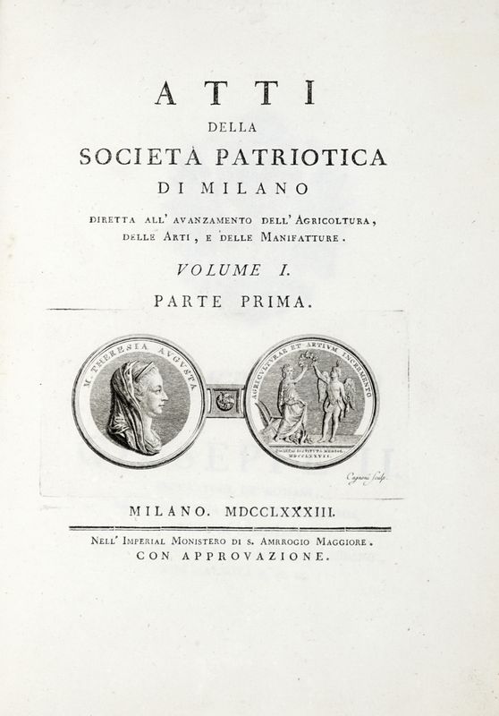 3 volumi in-4° grande (mm 286x210). Pagine [6], 239, [3] con 3 tavole fuori testo; [2], cliv, [2], 310 con 18 tavole fuori testo; cxl, 426 con 14 tavole fuori testo. Con nel complesso 35 tavole calcografiche, talvolta ripiegate. Vignetta calcografica ai frontespizi. Primo volume privo della carta bianca iniziale, terzo privo di 2 carte in principio (contenenti la Dedica), parte delle tavole arrossata (soprattutto al terzo volume) ma buona copia, fresca, marginosa e parzialmente intonsa. Legatura rimontata in mezza pelle con punte e piatti in carta marmorizzata. Titoli in oro su tassello al dorso. Sguardie rinnovate, piccole mancanze lungo le cerniere e ai piatti.