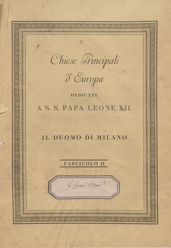In-folio (mm 645x460). Pagine 23, [1] + 11 tavole incise fuori testo di cui 2 in acquatinta protette da velina. Fioriture sparse a tutte le carte. Brossura editoriale con titoli entro cornice decorativa impressi in nero ai piatti. Pecetta di carta applicata al piatto anteriore con nota di possesso. Dorso mancante. Strappi ai margini esterni del piatto anteriore. Fogli sciolti.