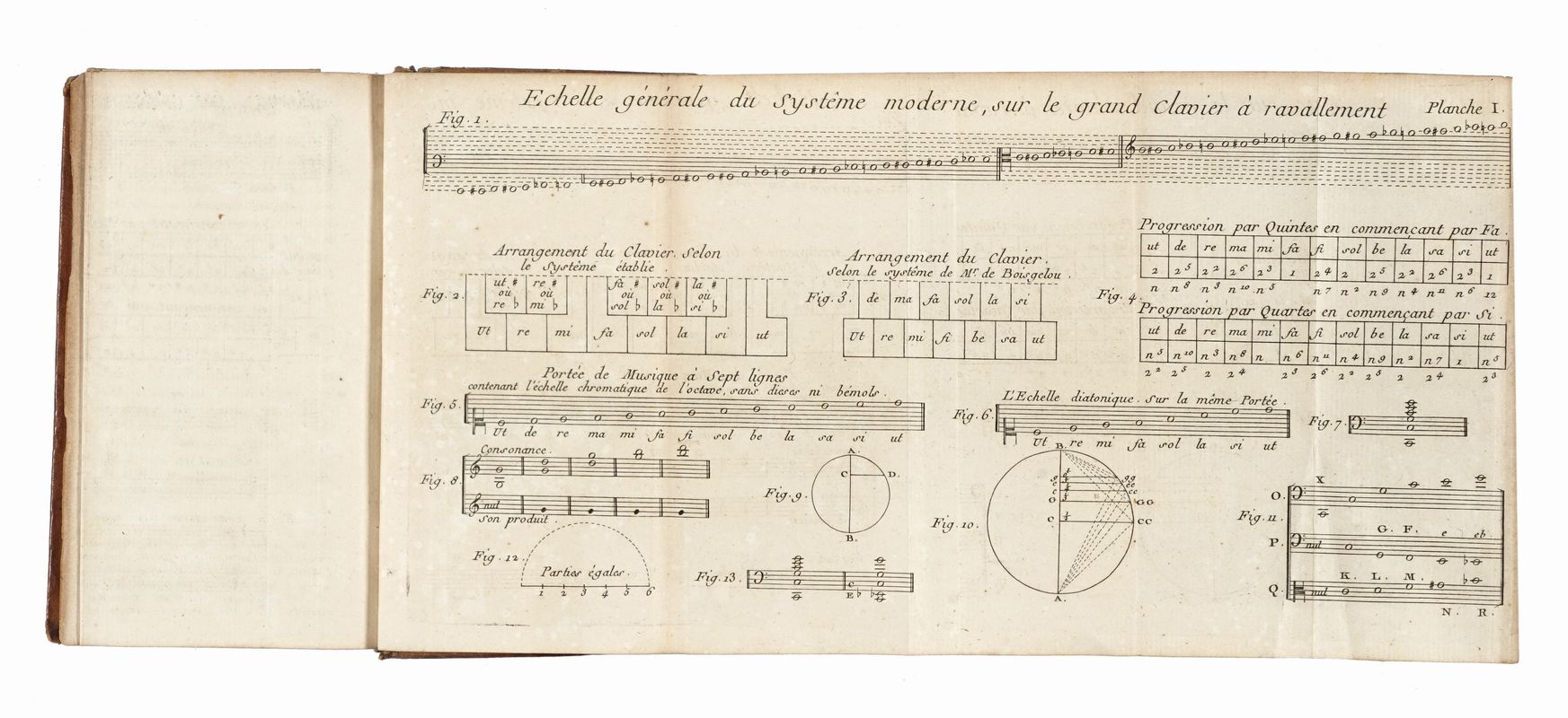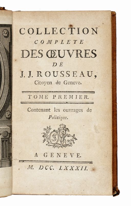 33 volumi in-12° (mm 166x90). Pagine 24, 341, [1]; [4], 441, [3]; [4], LXVII, [1], 355, [1]; [4], 464; [4], 419, [1]; [4], 383, [1]; [4], 386, [3]; [4], 366, [2]; [4], 444; [4], 380; [4], 492; [4], VIII, [1], 10-448; [4], 342; [4], 535, [1]; [4], xxxix, [4], 44-416, [4], [2] bianche; [4], 216, [3], 212-437, [1]; [6], xx, [1], 22-572, [4] bianche; [6], 400; [4], 348; [4], 432; [4], 387, [1]; [4], 314, [2]; [4], 460; [4], 584; [4], 403, [5] bianche; [4], 468; [4], 400; [4], 445, [3]; [4], 455, [1]; [4], 462, [2] bianche; 439, [1]; 403, [5] bianche; [4], 444. Con complessivamente 37 carte di tavole (di 41 segnalate da OPAC) e X pagine di tavole contenenti l'Airs principaux du Devin du Village, di cui 19 ripiegate. Il tutto inciso in rame fuori testo. Le X pagine di tavola contenenti Airs principaux du Devin du Village sono legate al volume XV e non al XVI come segnalato da Opac. Alcune carte intensamente brunite, fioriture sparse e altri piccoli marginali difetti. Al volume III le carte Civ-Cv e Cvi-Cvii sono rispettivamente montate invertite, così come le carte O4-O5 e O6-O7 del volume X. Piccolo lavoro di tarlo al margine inferiore di tutto il volume X, senza perdita di testo. Taglio restaurabile alla carta S6 del volume XV, piccolo strappetto alla carta H6 del volume XXI, entrambi coinvolgono parte del testo. Alcune tavole presentano strappi lungo le piegature. Legatura omogenea coeva in piena pelle, titoli in oro al dorso a 5 nervetti. Difetti alle cerniere e alle cuffie, e altre minime mende. Ex-libris in carta al contropiatto anteriore di ciascun volume.