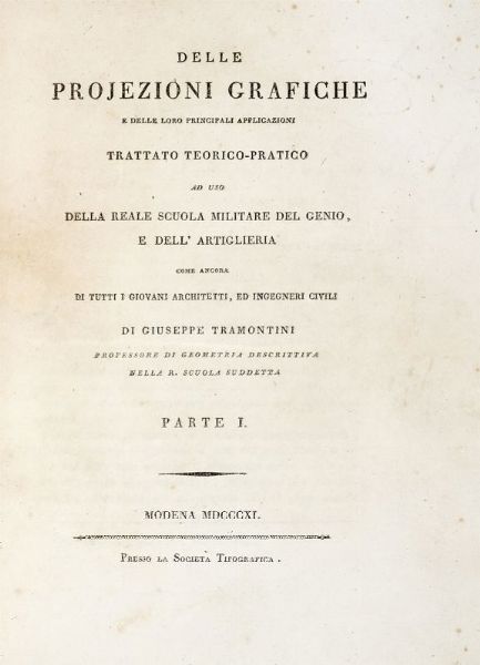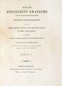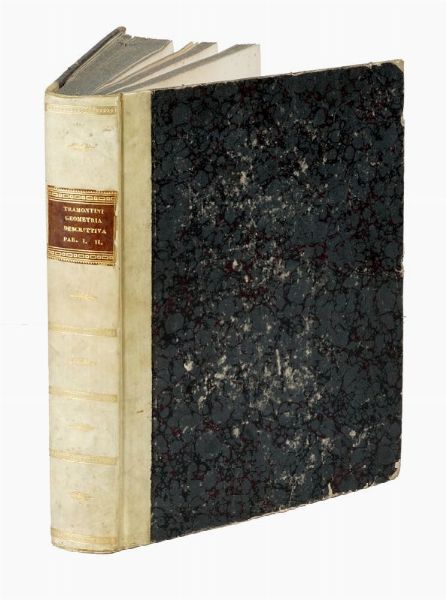 2 parti in 1 volume in folio (mm 293x213). Pagine XXIII, 1 bianca, 172, 16 di Appendice con 10 tavole ripiegate fuori testo; VII, 1 bianca, 214, 2 bianche con 24 tavole ripiegate fuori testo. Esemplare con lievi fioriture, più evidenti in alcune carte, e occasionali bruniture. Piccolo forellino di tarlo marginale nei primi fascicoli di testo. Legatura in mezza pergamena con piatti in carta marmorizzata e titoli in oro su tassello al dorso. Tagli blu.