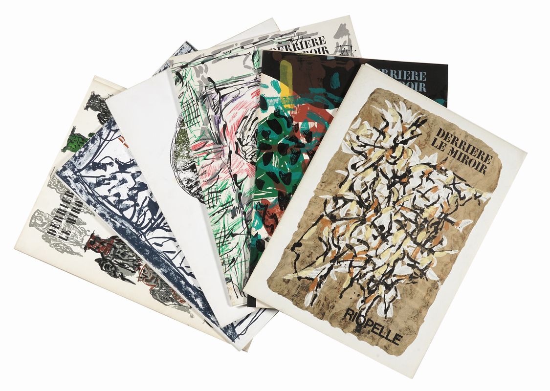 6 numeri in 6 fascicoli sciolti in-folio (mm 375x280). Il lotto si compone del n. 160 del 1966: Riopelle. Con 10 litografie a colori dell'Artista, di cui 2 a doppia pagina e una sciolta, più volte ripiegata; del n. 171 del 1968. Riopelle. Con 10 litografie a colori dell'Artista, di cui 6 a doppia pagina; del n. 185 del 1970: Riopelle. Con 6 litografie a colori dell'Artista, di cui 2 a tripla pagina; del n. 208 del 1974: Riopelle. Con 13 litografie a colori dell'Artista, di cui 8 a doppia pagina e una a tripla; del n. 218 del 1976: Riopelle. Con 4 litografie a colori dell'Artista, di cui una a doppia e una a tripla pagina; del n. 232 del 1979: Riopelle. Con 12 litografie a colori dell'Artista, alcune anche a doppia pagina. Esemplari riccamente illustrati; ciascun fascicolo entro brossura editoriale illustrata, con lievi macchie e fioriture ai piatti, ma nel complesso in buono stato di conservazione.
