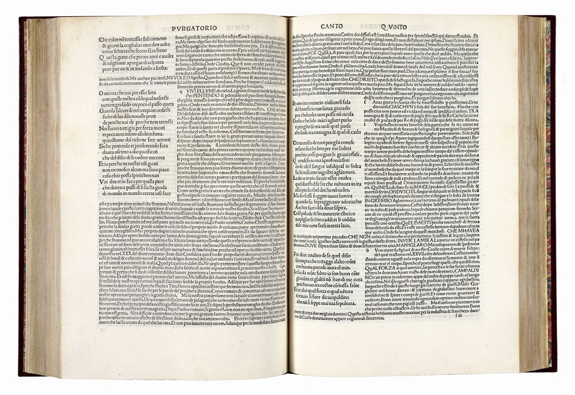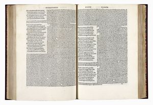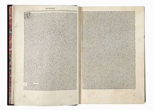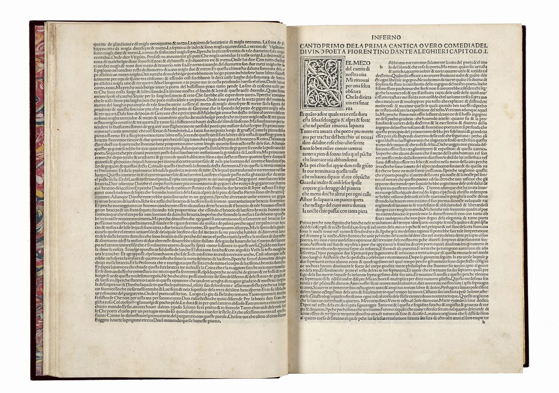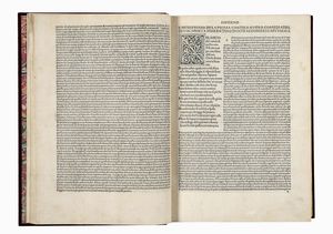In folio (mm 320x220). Carte [270]. Segnatura a10, b-z & A-H8, I K6. Esemplare lavato. Foro di tarlo restaurato (con perdita di alcune lettere di testo) a carta n8, o1, o2, o3; altro lavoro di tarlo che tocca alcune lettere di testo, anch'esso restaurato, dalla carta z5 a fine volume. Ricostruito il margine superiore esterno della carta K6, altri piccoli forellini nelle ultime carte di volume, macchie alle carte y4 e y5 ma copia completa e in buono stato. Legatura moderna in piena pelle con titolo impresso in oro al dorso. Guardie in carta marmorizzata, tagli dorati. Ex-libris di precedenti proprietari al contropiatto anteriore e alla carta di guardia in principio. Note manoscritte parzialmente lavate a carta i3.