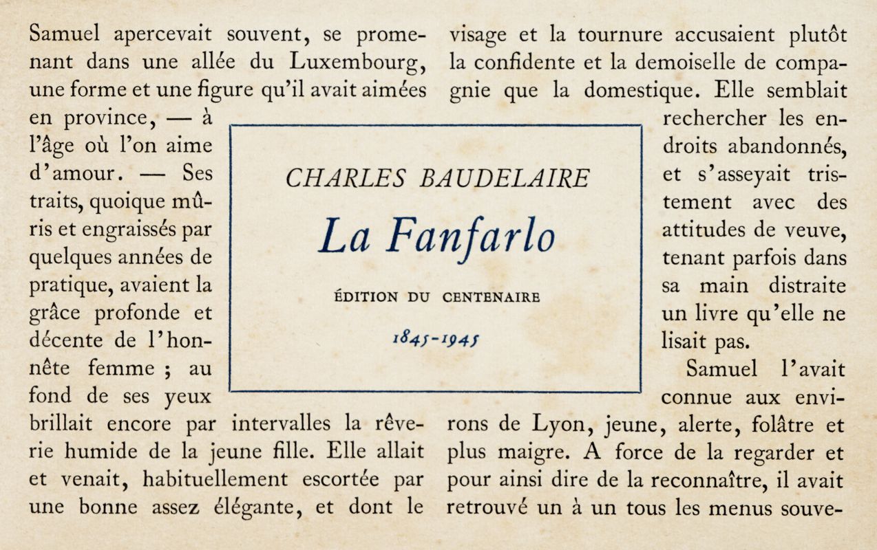 In-8° oblungo (mm 260x125). Pagine [16], 155, [3]. Con un'antiporta ripiegata con il ritratto dell'autore, disegnato da Hans Holbein il giovane e inciso da F. Weber. Esemplare in barbe e parzialmente intonso. Brossura editoriale con titoli in rosso e nero impressi al piatto anteriore e al dorso. Sovraccoperta e custodia in cartonato rigido. Esemplare n° 815/1025 impresso su vélin ivoire pur chiffon de Lana. SI AGGIUNGE: Flaubert Gustave, La légende de Saint Julien l’hospitalier. Paris: A. Tallone, 1945. In-32° album (mm 80x130). Pagine 124, [18]. Con 2 tavole a colori raffiguranti una vetrata della cattedrale di Rouen disegnate da H. Lemarié. Copia in barbe. Tracce di foxing ad alcune carte. Brossura editoriale illustrata in blu al piatto anteriore, sovraccoperta e custodia in cartonato rigido. SI AGGIUNGE: Baudelaire Charles, La Fanfarlo. Édition du centenaire 1845-1945. Paris: A. Tallone, 1945. In-32° album (mm 80x130). Pagine 151, [23]. Copia in barbe. Brossura editoriale con testo e titoli impressi al piatto anteriore, sovraccoperta e custodia in cartonato rigido. Esemplare n° 74/2035. SI AGGIUNGE: Nerval Gérard (De), Sylvie. Souvenir du Valois. Paris: A. Tallone, 1945. In-32° album (mm 80x130). Pagine 107, [3]. Con 2 xilografie di M. Melsonn, di cui una al piatto anteriore. Copia in barbe. Brossura editoriale, sovraccoperta e custodia in cartonato rigido. Esemplare n° 760/1030.