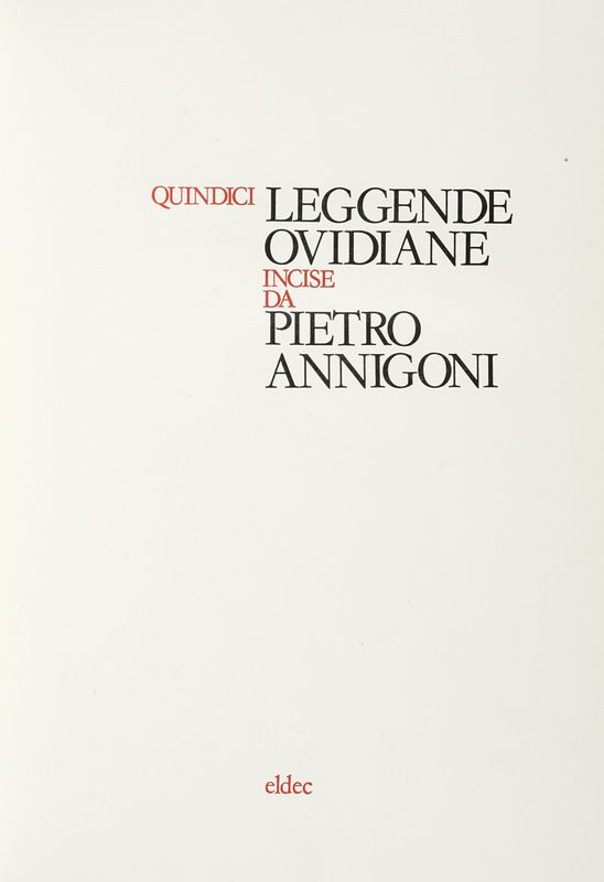 In-folio (mm 495x350). Pagine XVI, [4], 205, [7]. Con 31 tavole di Piero Annigoni fuori testo, alcune anche a doppia pagina. Legatura editoriale in piena pelle con titoli e decori impressi ai piatti e al dorso a 4 nervi. Conservato in custodia in piena tela decorata. Uno dei 2500 esemplari firmato dall'Artista su una tiratura complessiva di 2565 copie. Esemplare privo dell'incisione originale e del facsimile dell'atto notarile. SI AGGIUNGE: Ovidius Naso Publius, Quindici leggende ovidiane incise da Pietro Annigoni. [Roma]: Eldec, [1981]. Pagine 202, [10]. Esemplare n. 129 firmato al colophon dall'Artista, uno dei 105 contenenti due acqueforti originali con numerazione araba (che invece mancano), su una tiratura complessiva a 795 copie. Legatura editoriale in piena pelle marrone con decori e titoli impressi in oro al piatto anteriore e ai dorsi.