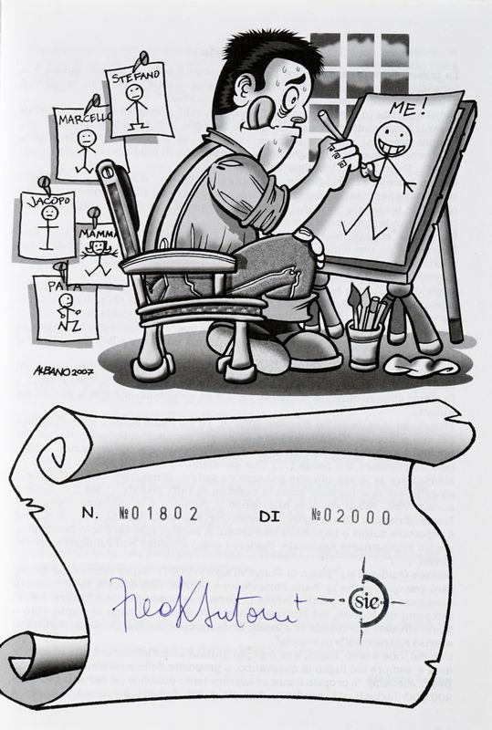 5 volumi in-8° (mm 240x170). Tutto il pubblicato dal n. I del novembre 2007 al n. V del gennaio 2010. Esemplari illustrati, ognuno da un disegnatore differente, con brossure originali figurate. Copie a tiratura limitata (2000 per il primo numero, 1000 per gli altri), tutte firmate a penna dall'Autore, ad eccezione del quinto numero, del quale, nel nostro caso, non è indicata neppure la tiratura. Minimi difetti al piatto del primo volume, altrimenti ottime condizioni di conservazione. Lotto non passibile di restituzione.