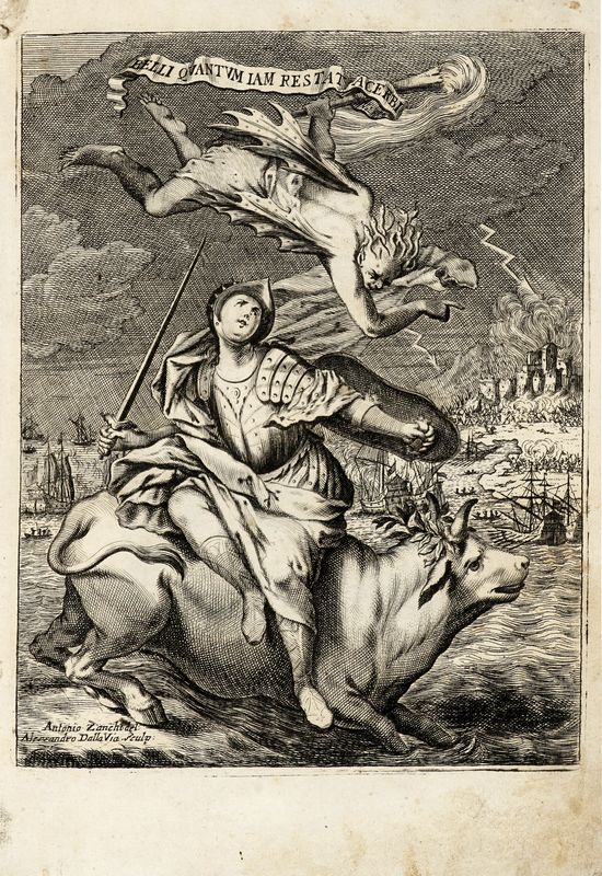 2 volumi in-4° (mm 263x185). Pagine [10], 472, [30] con un'antiporta disegnata da Antonio Zanchi e incisa da Alessandro Dall Via; [2], 384, [34] di [36] con un'antiporta incisa. Ricostruito il margine inferiore di entrambi i frontespizi, al secondo volume marginali lavori di tarlo marginali alla prima metà dei fascicoli, sempre senza perdita di testo. Secondo volume privo dell'ultima carta bianca. Alcune tracce d'uso. Legatura in piena pergamena con titoli manoscritti al dorso. Alcune macchie ai piatti.