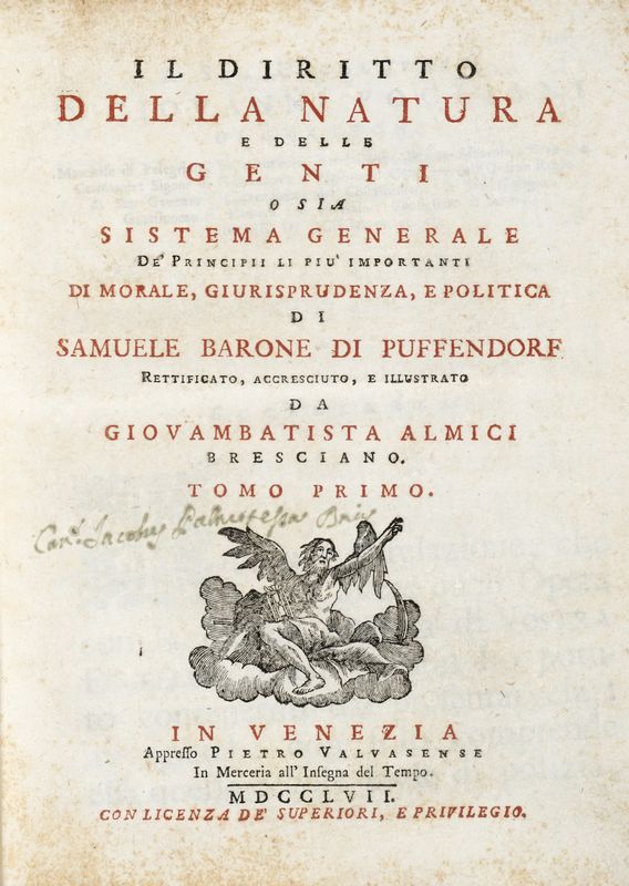 4 volumi in-4° (mm 245x183). Pagine VIII, XLVIII, 322; 476; 395, 1 bianca; 536. Con un ritratto dell'Autore in antiporta al primo volume. Al secondo volume lavoro di tarlo che tocca piccole porzioni di testo alle prime 15 carte e altri piccoli lavori di tarlo passim; al terzo volume lavoro di tarlo nel margine superiore degli ultimi fascicoli. Nel complesso sporadiche fioriture ma buona copia. Bella legatura in piena pelle bazzana con titoli e ampie impressioni dorate al dorso. Sguardie spruzzate, titolo su cartiglio. Alcuni forellini di tarlo parzialmente restaurati ai piatti.