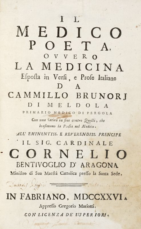In folio (mm 304x194). Pagine [24], 472, [6]. Piccola integrazione di carta nel margine superiore dell'occhietto, altri reintegri marginali alle prime 15 carte di testo. Gorata marginalmente la prima metà delle carte, alcuni strappetti restaurati, brunito l'ultimo fascicolo. Legatura ottocentesca in mezza pergamena con piatti in carta e titolo in oro su tassello al dorso.
