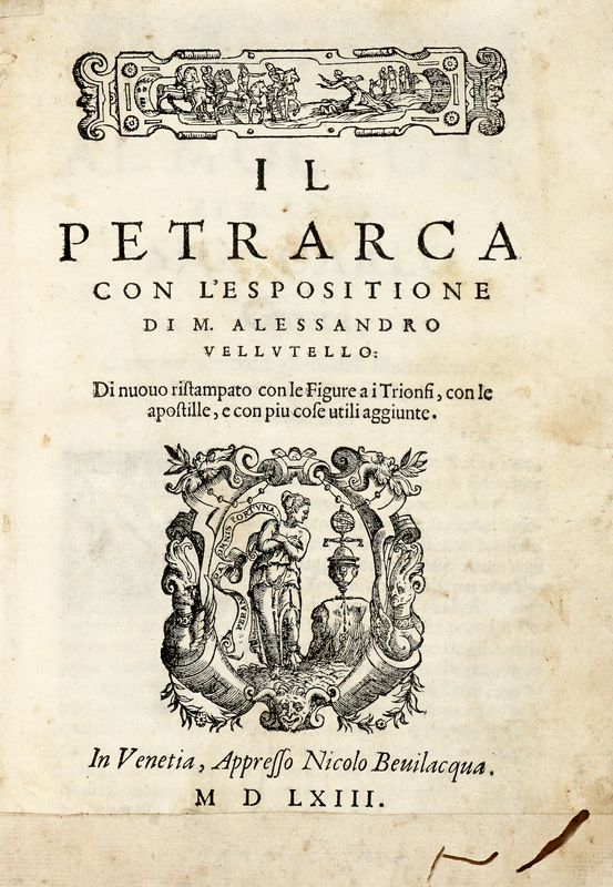 In-4° (mm 205x145). Carte [12], 213, [3]. Fregio in legno ripetuto a frontespizio e colophon, nel testo numerose illustrazioni xilografiche. Ricostruito il margine inferiore del frontespizio, un lavoro di tarlo nel margine inferiore delle prime 10 carte, ricostruito l'angolo inferiore esterno della carta *6 (senza perdite), tracce d'uso e macchioline passim ma buono stato complessivo. Legatura settecentesca in mezza pergamena con punte e piatti in carta decorata. Titolo in oro su tassello al dorso. Sguardie in carta decorata, tagli blu.