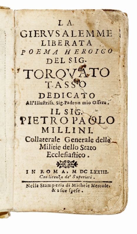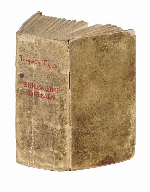 In-24° (mm 110x55). Con un ritratto dell'Autore finemente inciso in antiporta e 20 tavole silografiche a piena pagina fuori testo. Esemplare rifilato, con lievi bruniture uniformi, uno strappo al frontespizio senza perdite di inciso, una piccola gora al margine superiore di gran parte del volume, una mancanza al margine superiore delle pagg. 477-478 e altre minime mende. Mancante la carta Ee10. Legatura in piena pergamena rigida con titoli manoscritti in rosso al dorso; sguardie rinnovate. Difetti alle cerniere anteriori e punte stanche. Ex-libris in carta al contropiatto anteriore.