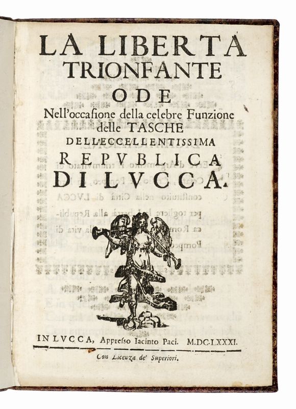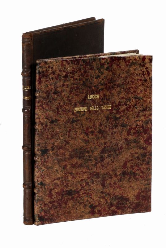 In-4° (mm 193x136). Pagine 8. Piccolo fregio xilografico al frontespizio, legni nel testo. Legatura moderna in piena pelle spruzzata con titolo impresso in oro al piatto anteriore. SI AGGIUNGE: Mellini Domenico, Parua ac pauca quaedam opuscula... Florentiae: typis Francisci Tosij, 1609. In-4° (mm 220x156). Pagine 56 [i.e. 60]. Fregio calcografico al frontespizio. Piccole mancanze alla prima carta, per il resto buono stato. Legatura moderna in piena pelle con titoli in oro al dorso.