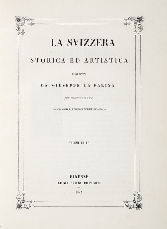 2 volumi in-4° (mm 290x217). Esemplari riccamente illustrati con belle tavole di vedute fuori testo, protette da velina. Fioriture concentrate soprattutto alle tavole, ma nel complesso ottimo stato conservativo. Legatura coeva in piena pelle con fregi e titoli in oro al dorso a 4 nervi. Punte stanche e spellature. SI AGGIUNGONO: Ricard Prosper, Les merveilles de l'autre France. Algérie, Tunisie, Maroc. Le pays, les monuments, les habitant... S.l. [i.e. Paris] : Hachette, 1924; Gourdault Jules, L'Italie pittoresque. Paris: Librairie Hachette, 1905; Le simplon et l'Italie septentrionale. Promenades et pèlerinages. Paris: Belin-Leprieur, s.d. [i.e. 1830 ca.]; Hume David, Storia d'Inghilterra [...] Volume primo (-ottavo). Milano: per Niccolò Bettoni, 1825-1937.