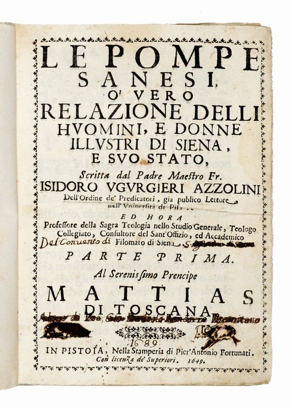 2 volumi in-4° (mm 203x143). Opera priva dei due occhietti (suppliti in facsimile) con bruniture anche intense alle carte, macchie e alcune bruciature. Legatura successiva in tutta pergamena rigida con titolo manoscritto al dorso. Fori di tarlo ai dorsi, ampia mancanza reintegrata ai piatti del primo volume, sguardie rinnovate. Copia da studio, lotto non passibile di restituzione.