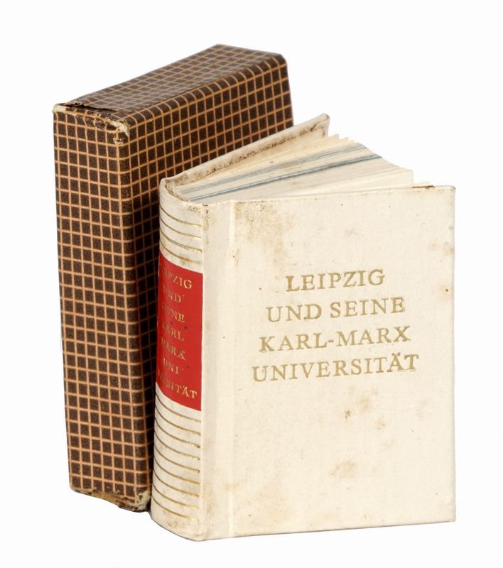 In-32° (mm 50x33). Con numerose fotoriproduzioni in bianco e nero nel testo. Legatura editoriale in piena pelle, con titoli in oro al piatto anteriore ed entro tassello al dorso. Lievi fioriture ai piatti, ma nel complesso ottimo stato di conservazione. Dedica manoscritta datata Leipzig, 5-IV-1977 al foglio di guardia anteriore. Entro cofanetto in carta decorata.