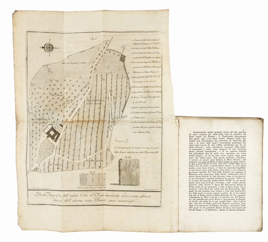 In-4° (mm 275x205). Pagine 53, [1] con 15 tavole fuori testo numerate I-XV impresse su 13 carte, alcune ripiegate. Frontespizio calcografico. Uno strappo restaurato alla tavola VII, leggere fioriture marginali, per il resto buona copia. Legatura originale in pieno cartonato con cornici e decorazioni impresse in inchiostro nero ai piatti. Mancanze lungo il dorso.