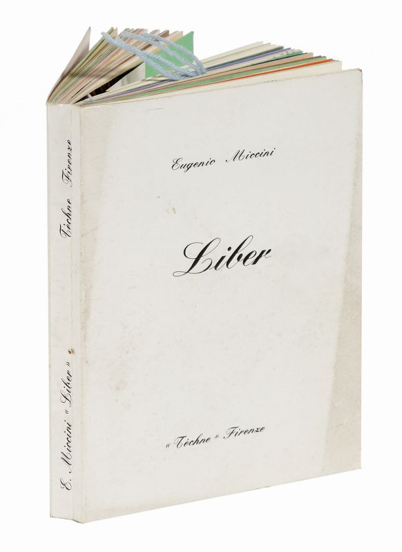 In-8° (mm 172x122). Raffinato libro-oggetto, realizzato interamente a mano, che contiene poesie visive e collage assemblati manualmente da Eugenio Miccini con tecniche e materiali diversi (collages, carte colorate, plastica, fili, lana, cartoline, coriandoli, fogli bruciati etc...). Leggermente allentate, ma ben conservate, alcune delle pagine iniziali. Brossura editoriale in pieno cartonato, con titoli in nero al piatto e al dorso. Lievi difetti. Esemplare n. 210/280, numerato e firmato dall'Autore.