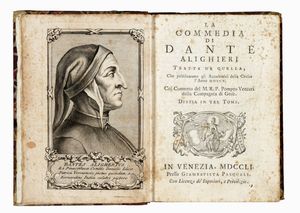 Firenze: presso Giuseppe Galletti, 1827. 3 volumi in-12° (mm 143x88). Ritratto di Dante in antiporta del [..]