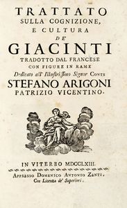 Con due tavole incise, In Viterbo: appresso Domenico Antonio Zenti, 1763. In-8° (mm 175x115). Pagine [16], [..]