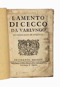 Prima edizione, In Firenze: nella stamp. di Piero Matini all'Ins. del Lion d'Oro, 1694. In-4° (mm 197x134). [..]
