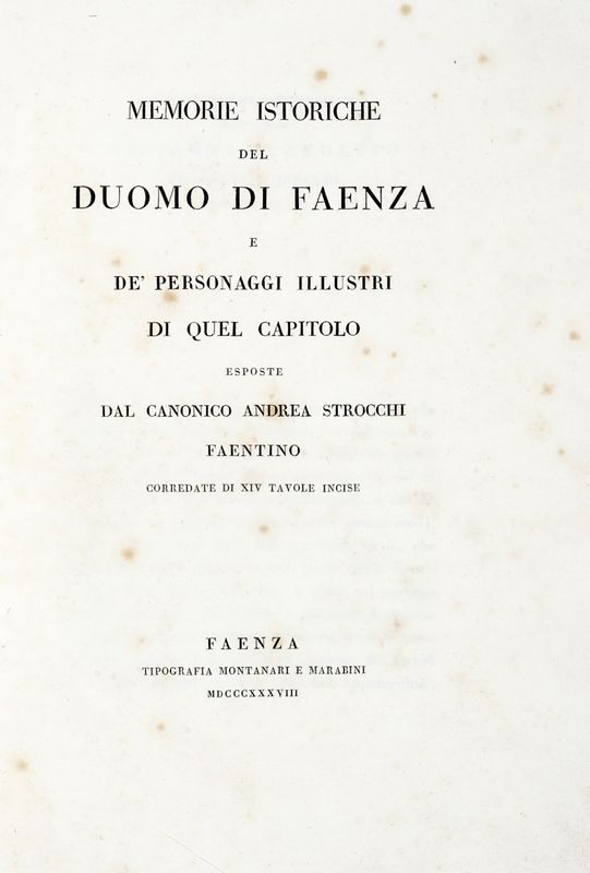 In-4° (mm 305x215). Pagine [8], 186, [2] con 14 tavole fuori testo legate in fine. Copia con fioriture. Legatura editoriale originale in pieno cartonato con titoli impressi entro cornici concentriche al piatto anteriore. Titolo ripetuto al dorso. Tracce d'uso alla legatura.