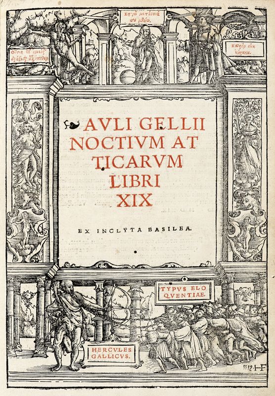 In-folio (mm 295x200). Carte [14], 106, [22]. Bel frontespizio impresso in rosso e nero con ampia cornice xilografica, marca incisa in fine. Lieve gora nel margine superiore di poche carte. Mancanza nel margine di carta P3, con perdita di alcune lettere di testo. Forellini di tarlo che attraversano i fascicoli, toccando talvolta piccole porzioni di lettere. Legatura moderna realizzata con pagina da antifonario.