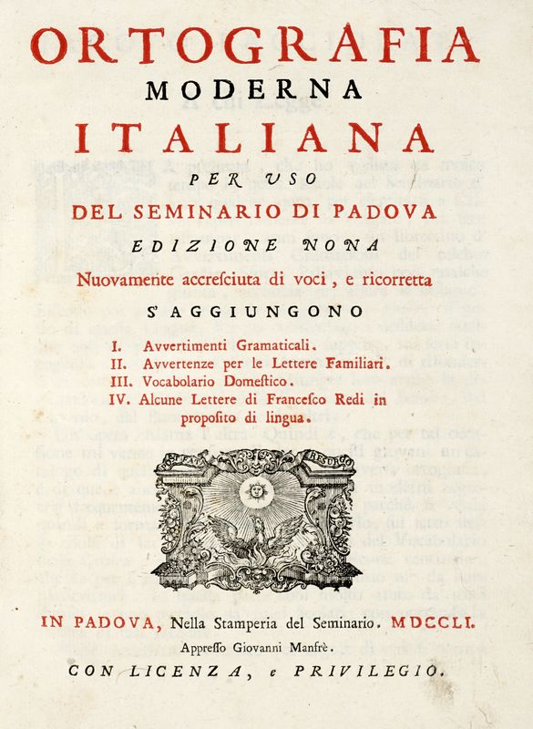 Ortografia moderna italiana per uso del Seminario di Padova.