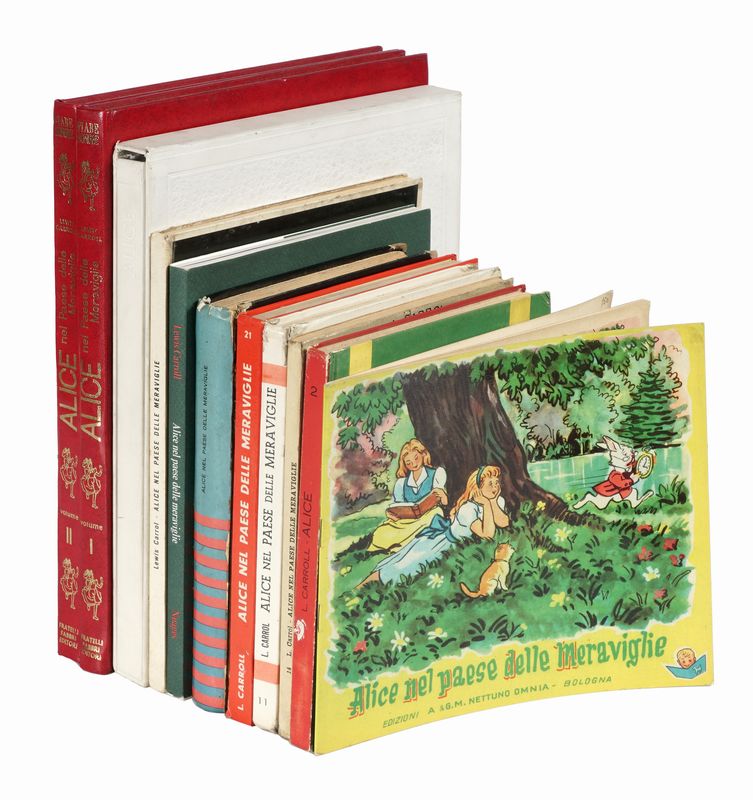 Compongono il lotto: 1) Carroll Lewis, Alice nel paese delle meraviglie. Illustrazioni di Giovanni Grasso Fravega... Silvio Berlusconi Editore, 1993. 2) Id., Alice nel Paese delle Meraviglie. Vol.I (-II) Illustrazioni di Lima e Sani... Milano: Fratelli Fabbri Editori, 1968. 3) Id., Alice nel paese delle meraviglie. Collana Classici della gioventù n°14. Milano: Editrice Boschi, 1955. 4) Id., Alice nel paese delle meraviglie. Illustrazioni originali a colori di Adriana Saviozzi. Bologna: Editrice Capitol, 1957. 5) Id., Alice nel paese delle meraviglie [...] Illustrazioni di Gaetano Proietti. Roma: Armando Curcio Editore, 1955. Elenco completo disponibile su richiesta.