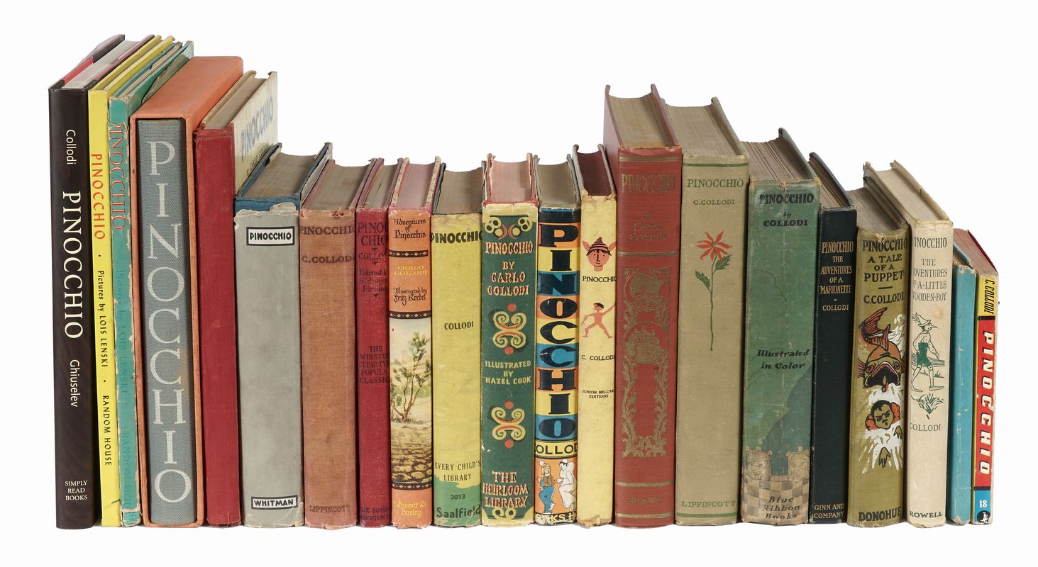 Compongono il lotto: 1) Collodi Carlo, Pinocchio [...] Illustrated by Christopher Rule. New York: J. H. Sears & Company, Inc., 1926. 2) Id., Pinocchio put-together book [...] Illustrated by Christopher Rule and Pelagie Doane. New York: Saml Gabriel Sons & Company, 1937. 3) Id., The adventures of Pinocchio [...] Illustrations by Richard Floethe. New York: The Limited Editions Club, 1937. 4) Id., Pinocchio. The adventures of a marionette [...] with many originals darwings by Charles Copeland. Boston: Ginn And Company, 1904. 5) Id., Pinocchio. The adventures of a little wooden boy... New York: T Y Crowell Co. Publishers, 1909. Elenco completo disponibile su richiesta. (23)