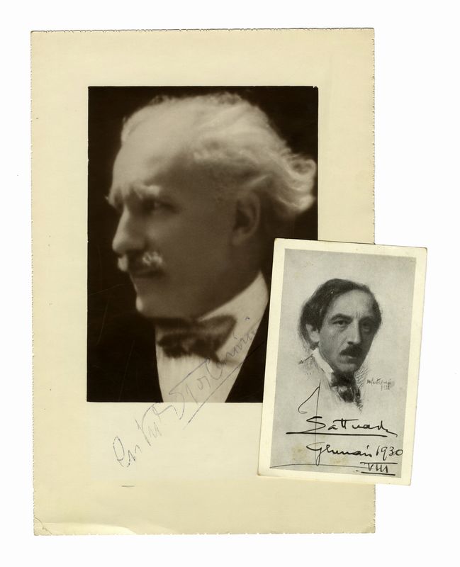 Dimensioni: 300x203 mm. SI AGGIUNGE: Id. 1 biglietto da visita con dedica e firma autografa applicato su cartoncino. Datato Natale 1923 SI AGGIUNGONO: 1 ritratto all’albumina di Giacomo Puccini (con il timbro a secco “Riproduzione vietata”), 1 ritratto all’albumina di Francesco Tamagno (con il timbro a secco “Riproduzione vietata”), 1 grande fotografia che ritrae Giuseppe Borgatti in abiti di scena (Sigfrido), 1 grande fotografia con firma e dedica autografa di Wassily Safonoff, 1 ritratto di Lorenzo Perosi (applicato su supporto), 1 cartolina autografa di Felice Lattuada. SI AGGIUNGE: Teatro alla Scala: “Sviluppo della curva interna dell’I. R. Teatro alla Scala di Milano”. Milano, presso Vallardi, Contrada di S. Margherita 1101. Incisione applicata su supporto. Dimensioni: 158x450 mm.