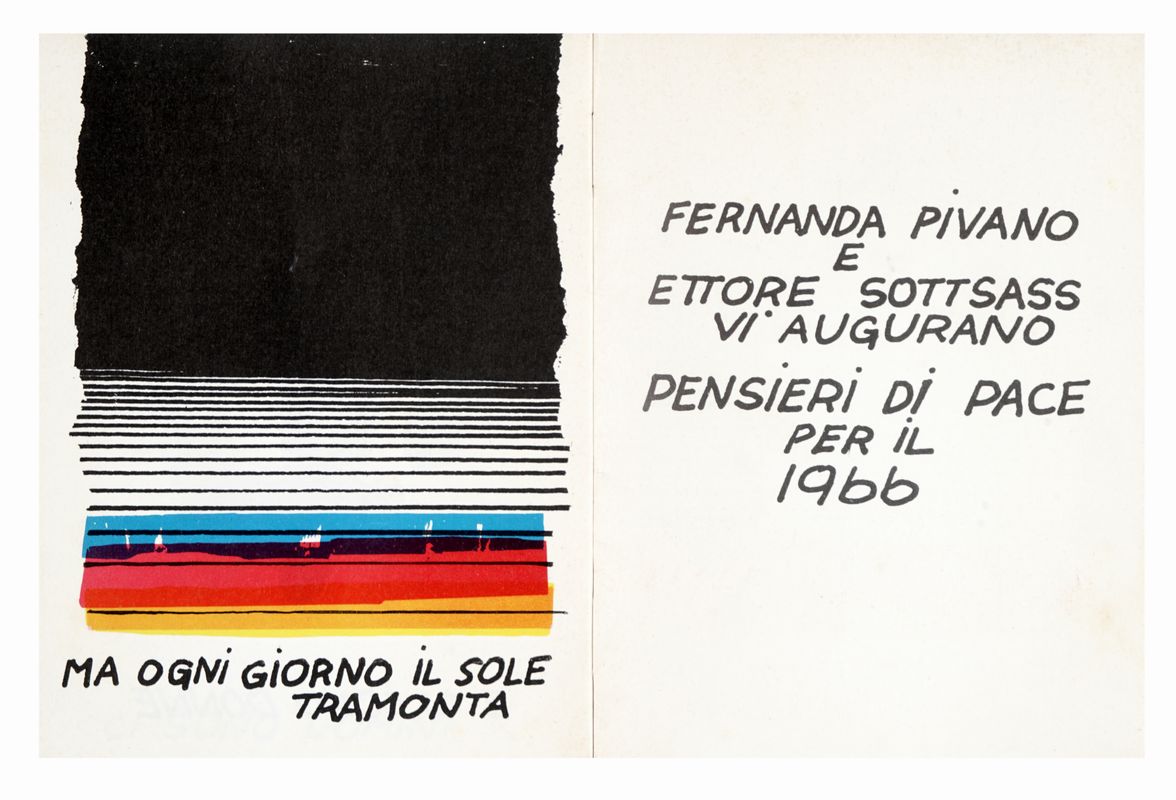 «Fernanda Pivano e Ettore Sottsass vi augurano pensieri di pace per il 1966», Milano: Edition East 128, 1965.