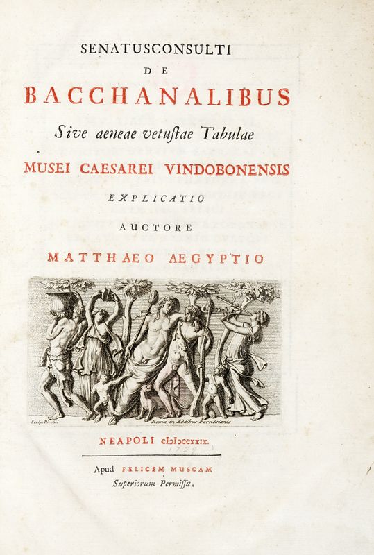 In folio (mm 315x213). Pagine [4], IV, 221, 1 con 2 tavole calcografiche ripiegate e legate in fine. Frontespizio impresso a due colori con ampia vignetta calcografica incisa da Piccini. Strappo restaurato che interessa l'inciso alla prima delle carte ripiegate, occasionali e lievi gore marginali, per il resto ottima copia. Legatura coeva in piena pergamena rigida con titolo impresso in oro su falso tassello al dorso. Sguardie rinnovate.