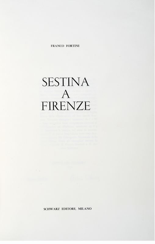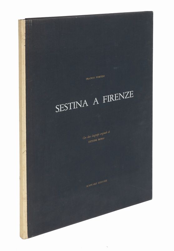 In-folio (mm 500x350). Pagine 49, [7] con 10 litografie di Ottone Rosai. Esemplare a bifoli sciolti, in ottimo stato di conservazione. Entro cartella editoriale in piena tela con titoli in nero e oro al piatto anteriore; minimi segni di usura. Es. n. 90, su una tiratura complessiva di 110, uno dei 90 in numeri arabi firmati nel colophon da Fortini e Schwarz.