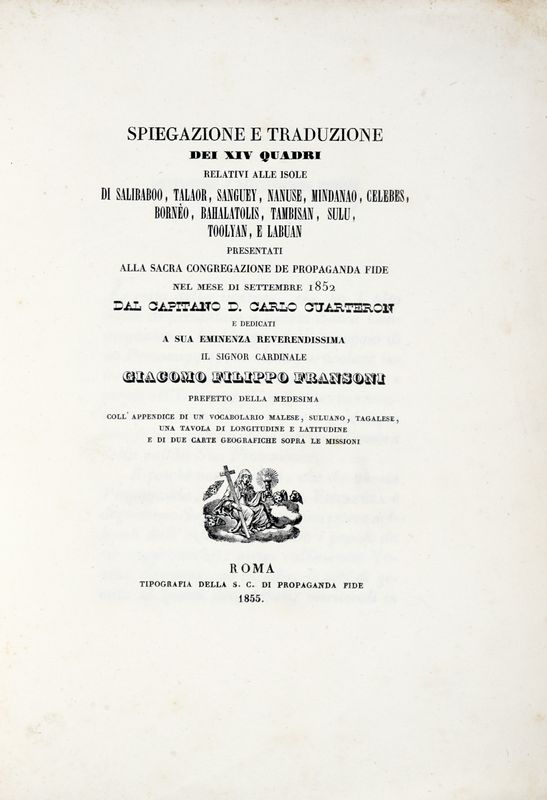 In-4° (mm 300x230). Pagine VIII, 227, [1] con 2 tabelle, 2 carte geografiche litografiche più volte ripiegate e 2 piante. Copia ben conservata, in barbe e parzialmente intonsa. Brossura editoriale originale in carta azzurra con titoli impressi a inchiostro nero entro cornice al piatto anteriore. Uno strappo richiuso al piatto anteriore, ricostruiti il dorso e il piatto posteriore. Nota manoscritta sulla brossura.