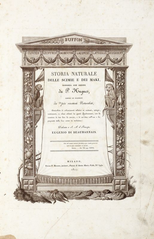 In-folio (mm 472x312). Carte [1] di frontespizio, VI, [3], tav. I-IX, [1], tav. X-XVII, [1], tav XVIII-L, [3], LI-LX, [2], tav. LXI-LXXXVIII, [1], tav. 4, [2], [2], tav. VIII, [2] IX-X, [2], XI-XIII, [2], XIV, [2], XV-XVI. Una piccola gora nel margine inferiore centrale che percorre tutto il volume, alcune pagine con fioriture. Legatura coeva in mezza pelle verde con piatti in carta decorata; titoli e impressioni dorate al dorso. Mancanze alle cuffie e lungo le unghiature. Ex-libris applicato al contropiatto anteriore.
