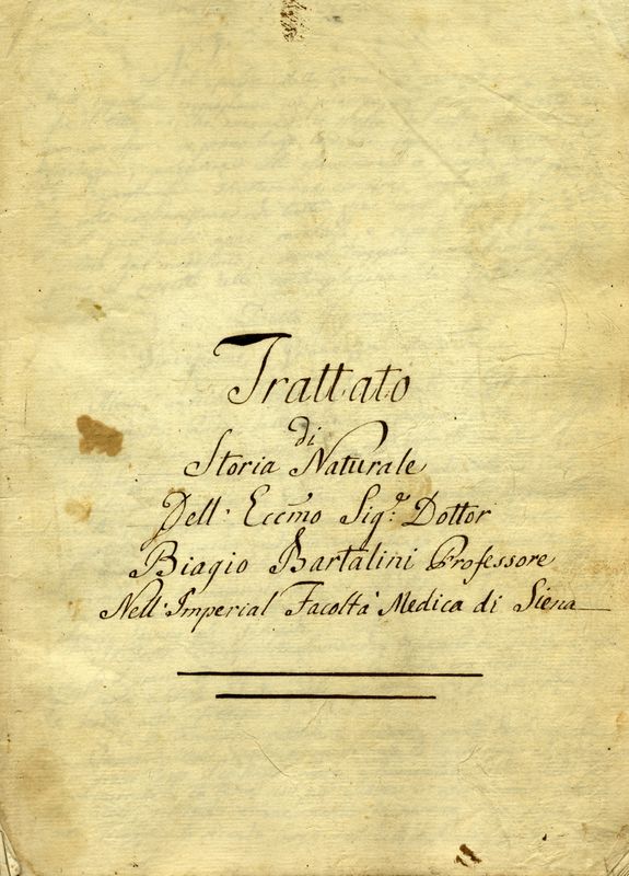 Trattato / di / storia naturale / [...] / Biagio Bartalini Professore / Nell'Imperial [..]