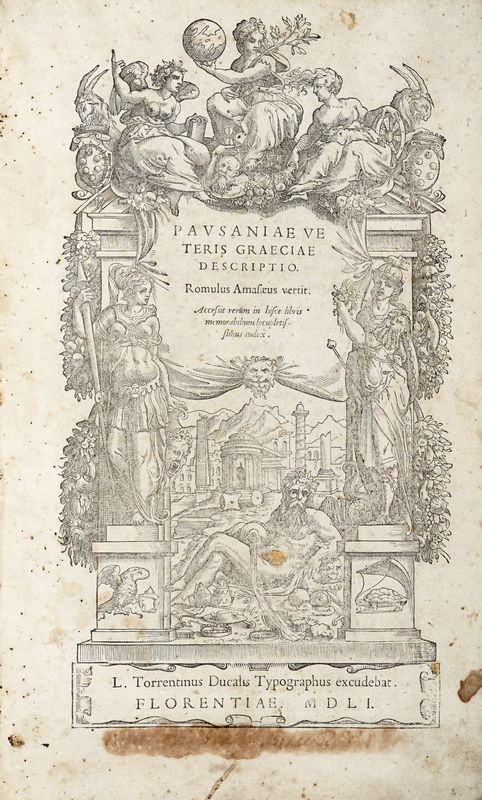 In folio (mm 340x208). Pagine 7, 1 bianca, 432, [78]. Frontespizio entro elaborata cornice architettonica incisa in legno. Privo dell'ultima carta bianca. Una macchia al frontespizio, sporadiche pagine fiorite ma ottima copia, frescamente impressa su carta forte. Legatura in piena pergamena con titolo manoscritto su tassello cartaceo al dorso. Tassello parzialmente assente, fori di tarlo e mancanze lungo le cerniere e il dorso, altre mancanze ai piatti.