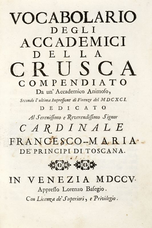 2 volumi in-4° (mm 225x155). Buone condizioni generali. Legatura coeva in mezza pergamena con punte e piatti in carta decorata. Titolo in oro su tassello al dorso. Piatti lisi, forellini di tarlo lungo le cerniere, mancanza al tassello del secondo volume, sguardie rinnovate.