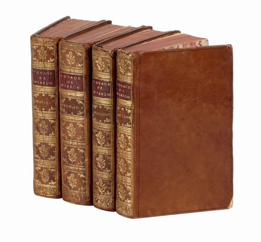 4 volumi in-12° (mm 160x94). Pagine [4], xlviii, 352; [4], 366; [4], 290; [4], 295, [1] con 1 antiporta calcografica al primo volume e 76 tavole incise in rame fuori testo di cui 38 ripiegate. Frontespizi in rosso e nero con 4 diverse vignette xilografiche. Altri piccoli legni del testo, anche a mò di testatine e finalini. Pagine lievemente ingiallite con sporadiche fioriture e qualche macchiolina. Strappo restaurabile alla tavola 2 pag. 321 del volume II. Legatura in piena pelle coeva con titoli e fregi in oro impressi al dorso su doppio tassello in pelle. Sguardie e contropiatti in carta marmorizzata. Tagli rossi.