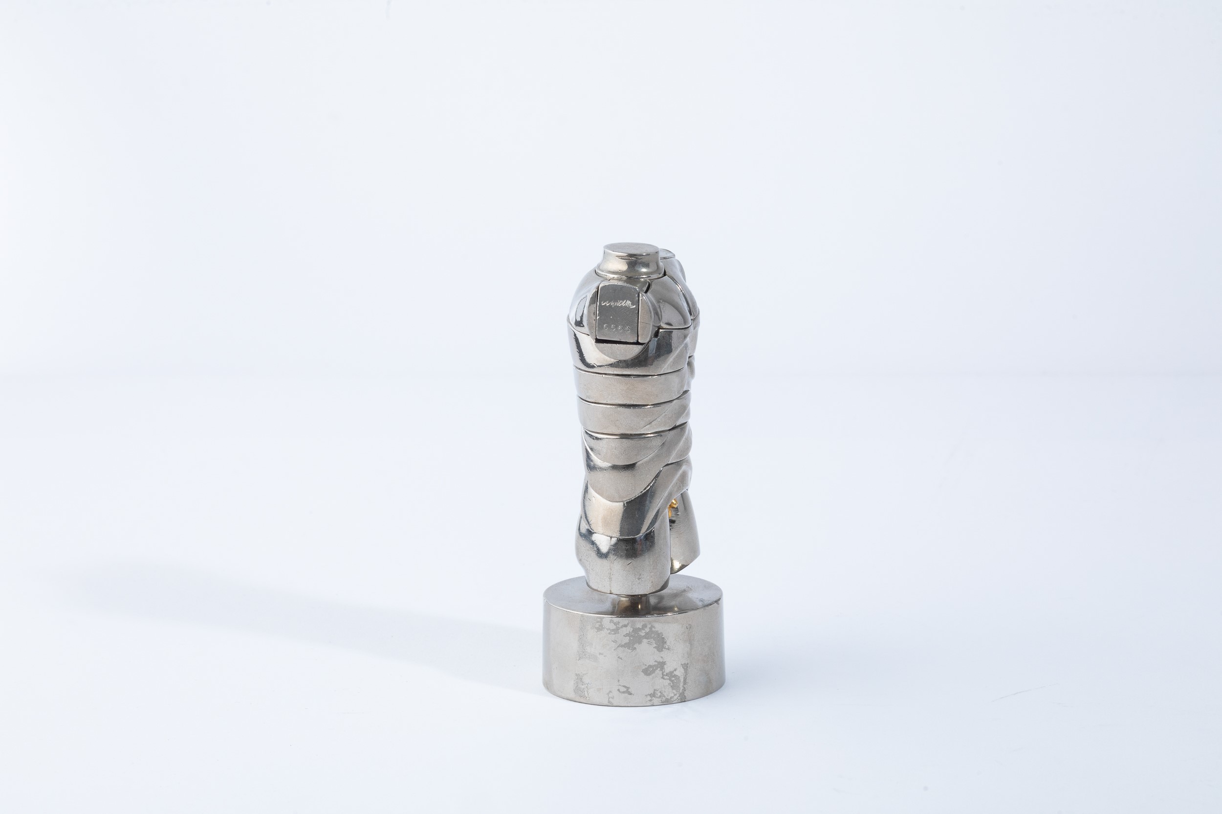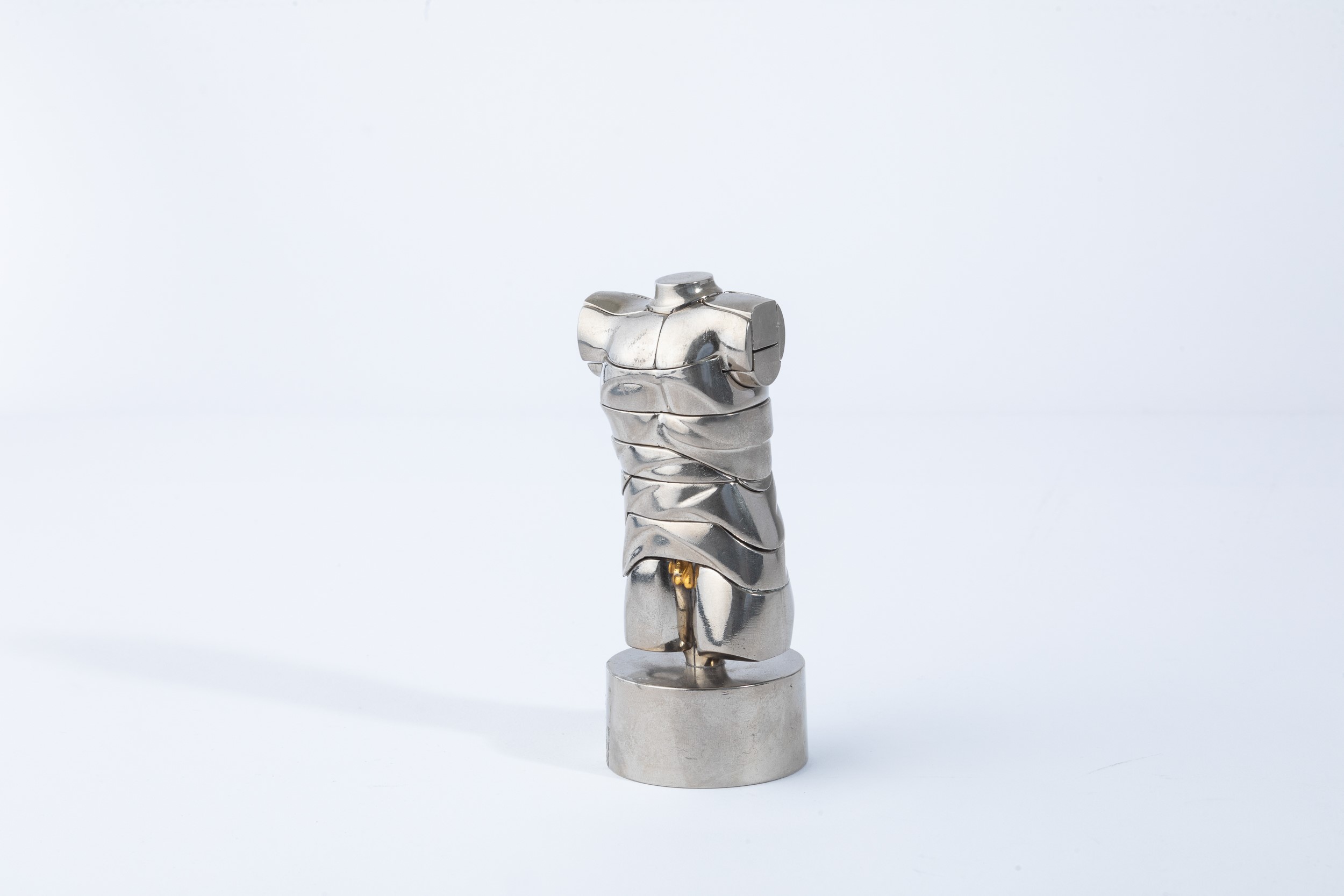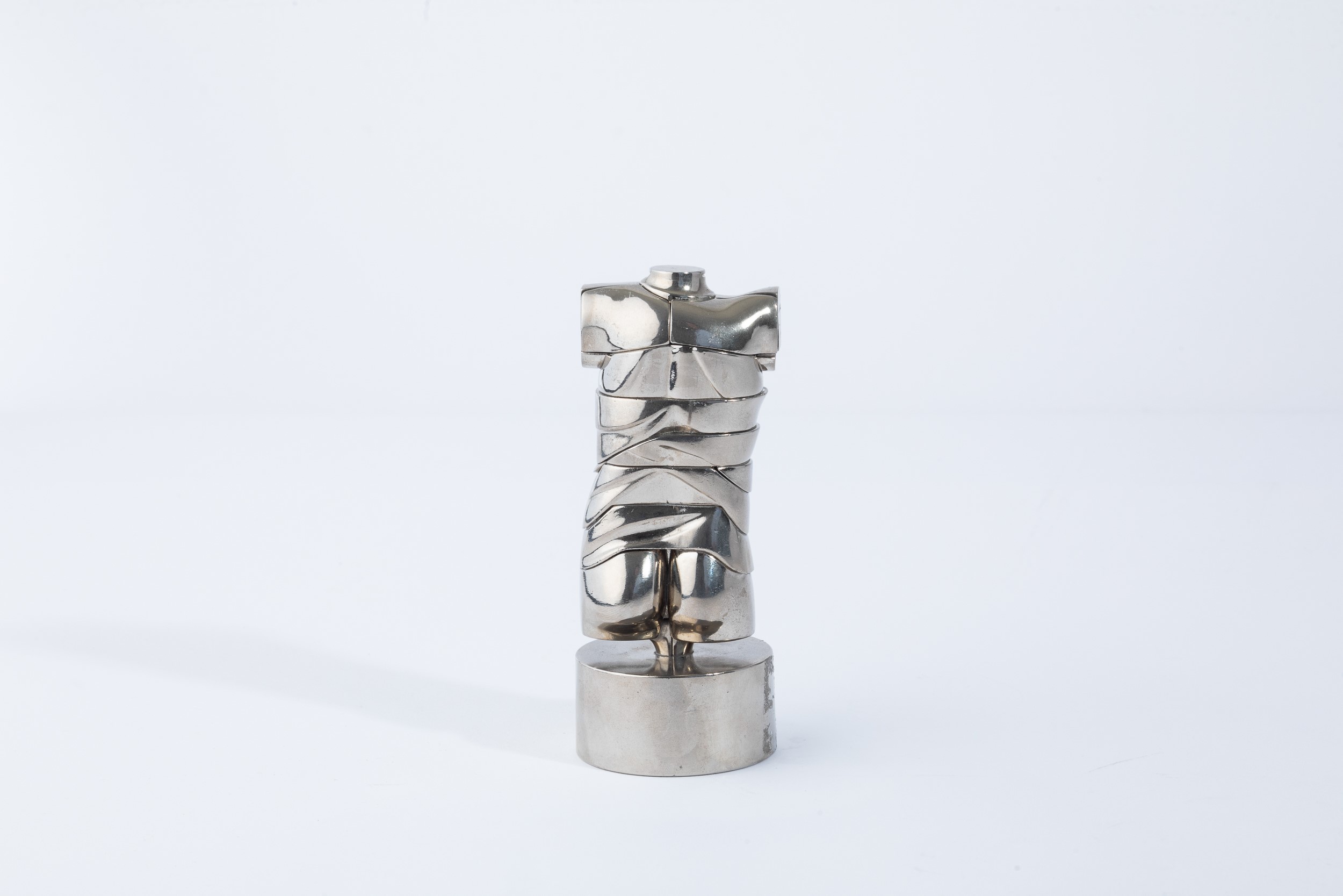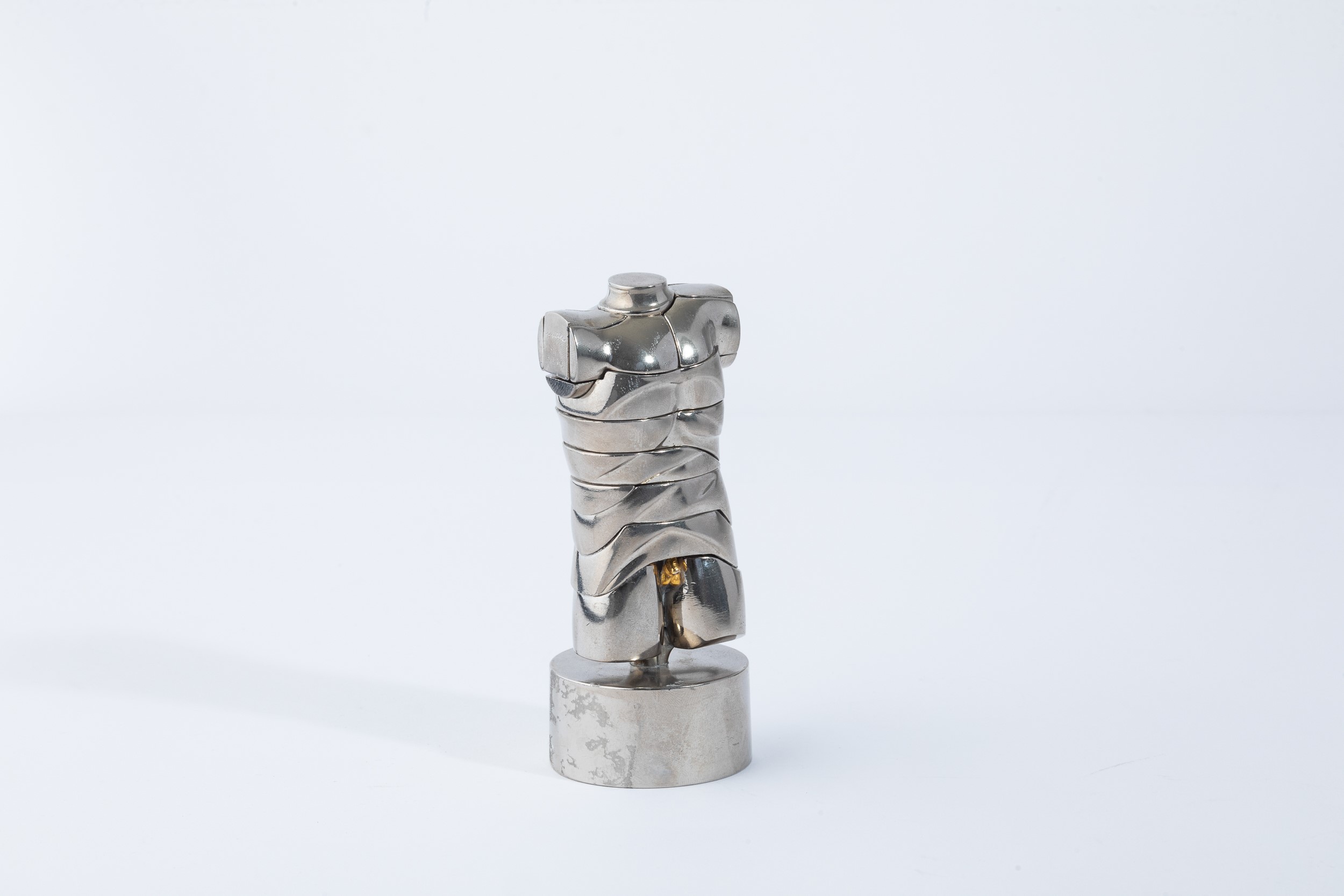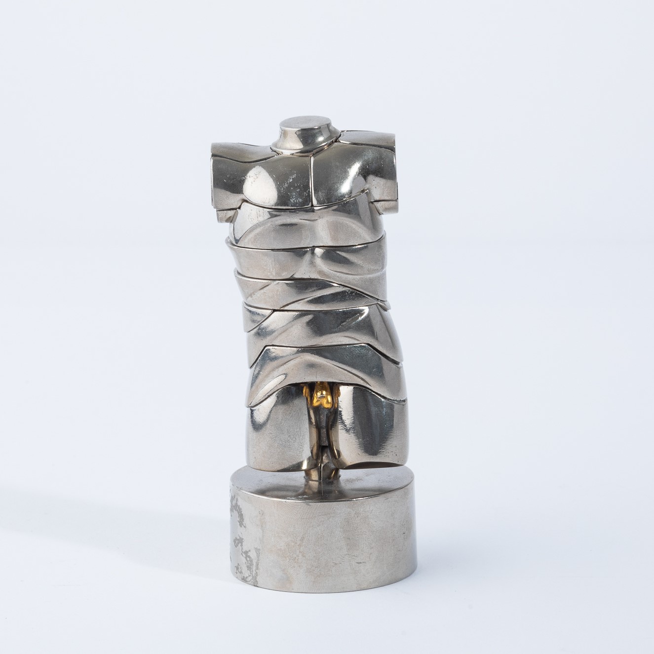 scultura in lega di alluminio nichelato, Largh. 5,4 - Prof. 3,6 - Alt. 10 Cm